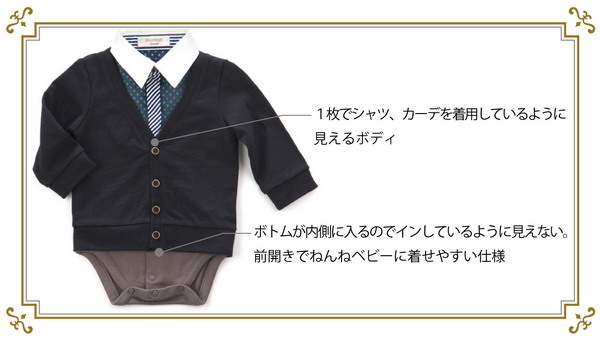 ■1枚でシャツ、カーデを着用しているように見えるボディ。 ■兄姉の入卒やおでかけにも便利。