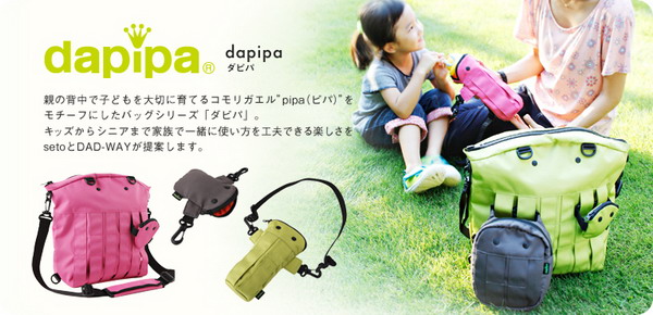 ダピパ(dapipa)は親の背中で子どもを大切に育てるコモリガエル”pipa(ピパ)”をモチーフにしたバッグシリーズが人気です。